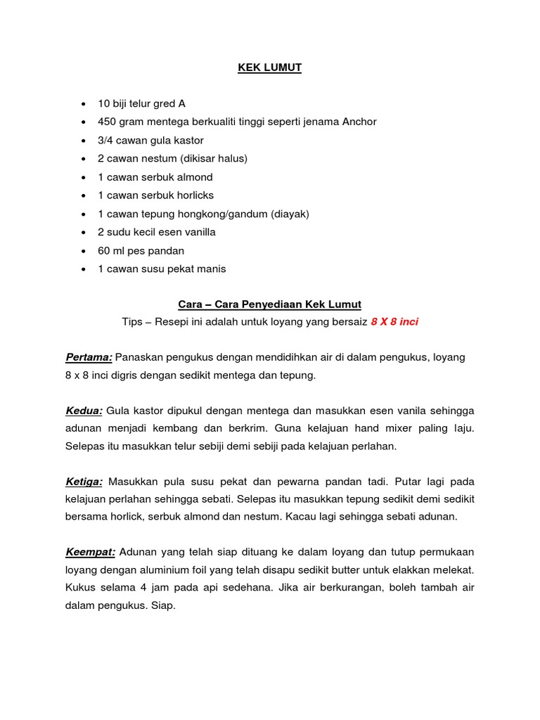 . Siapa yang belum cuba memang wajib try resepi Kek. Kek ni juga boleh di jadikan hidangan minum petang korang sekeluarga. 1 cawan serbuk horlicks Resepi Kek Lumut Kukus Sedap Ikuti langkah di bawah dengan teratur.
